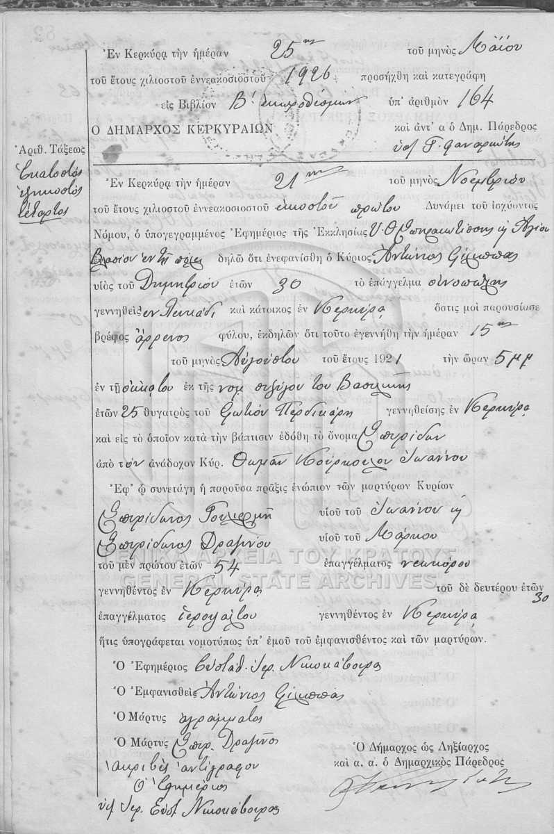 File #034 - ΛΗΞΙΑΡΧΕΙΟ ΚΕΡΚΥΡΑΣ  [1926]
