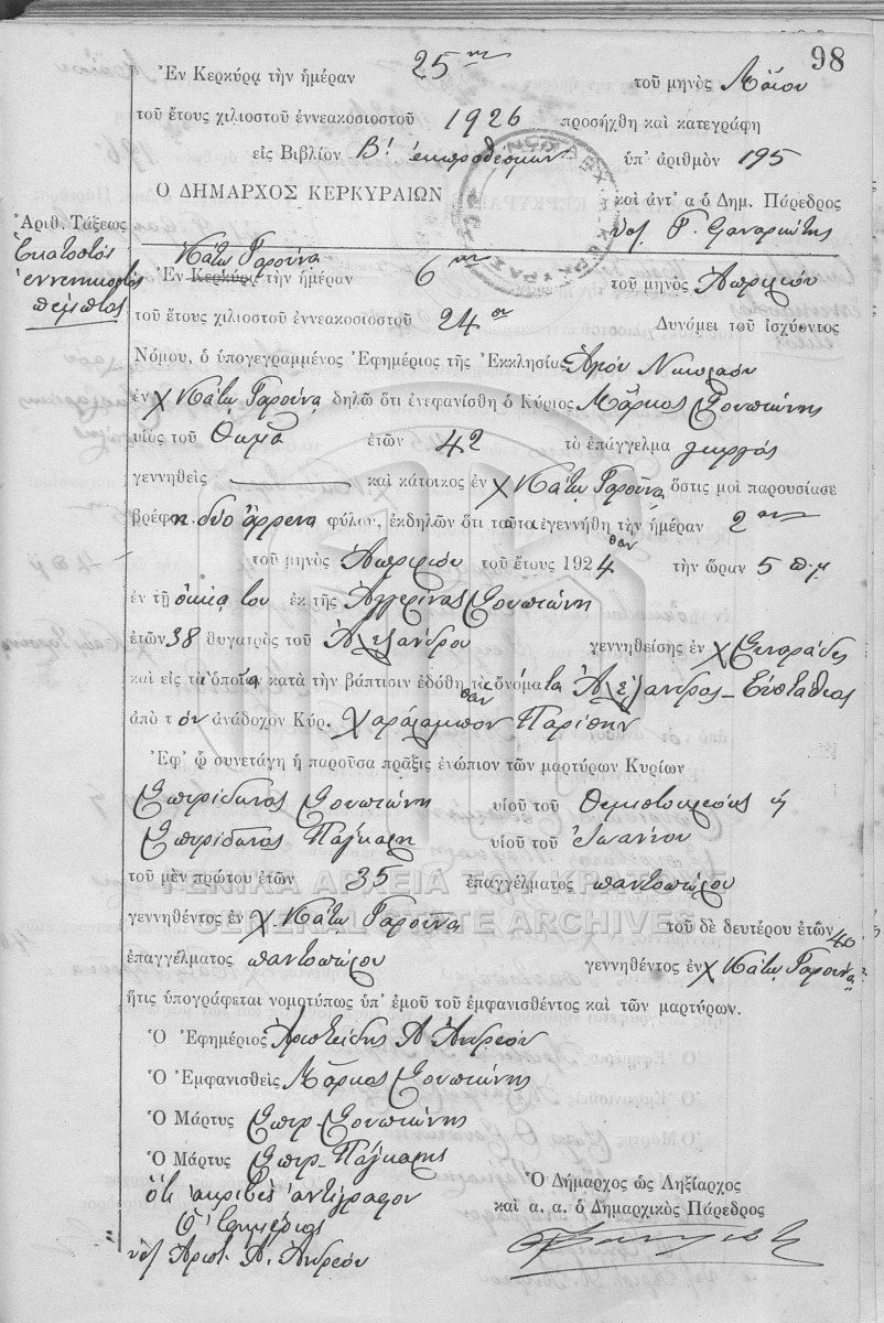 File #034 - ΛΗΞΙΑΡΧΕΙΟ ΚΕΡΚΥΡΑΣ  [1926]