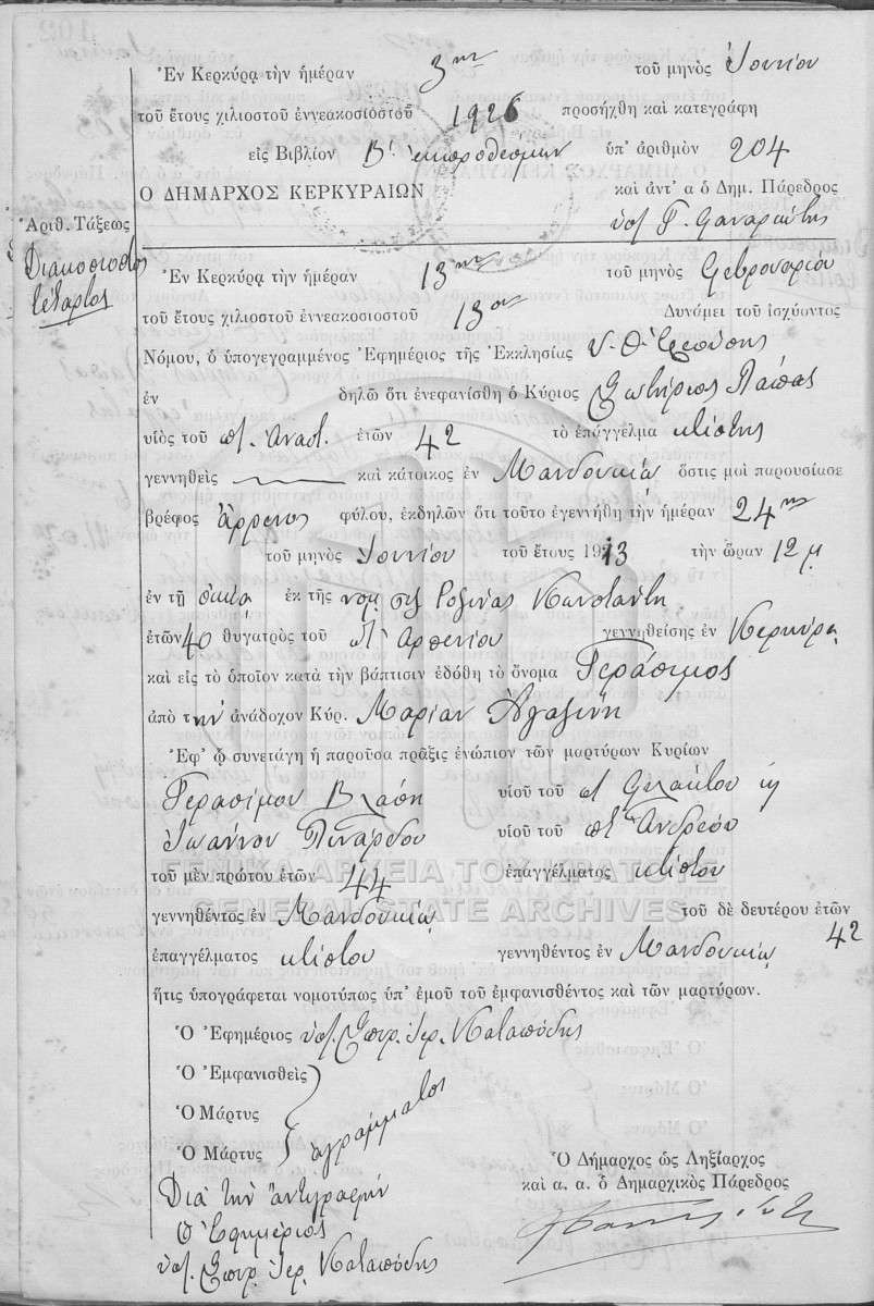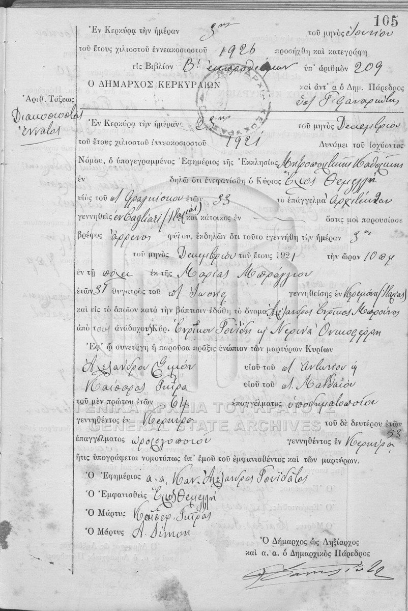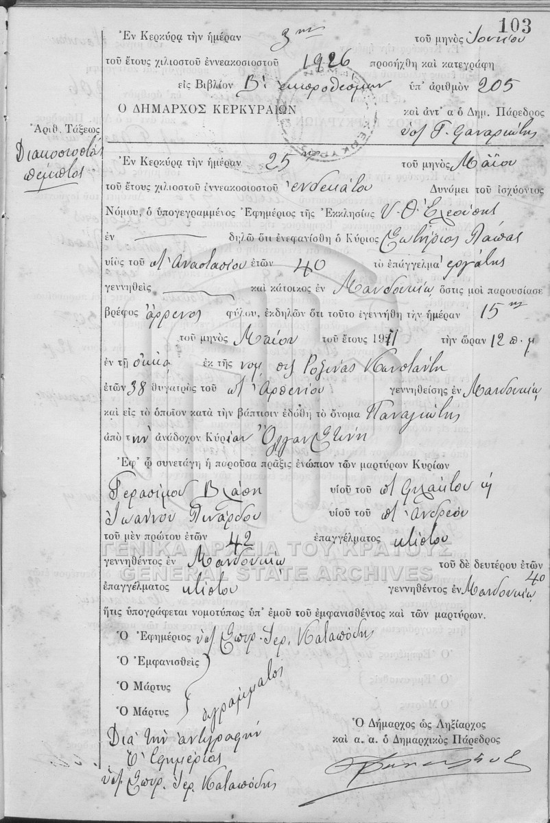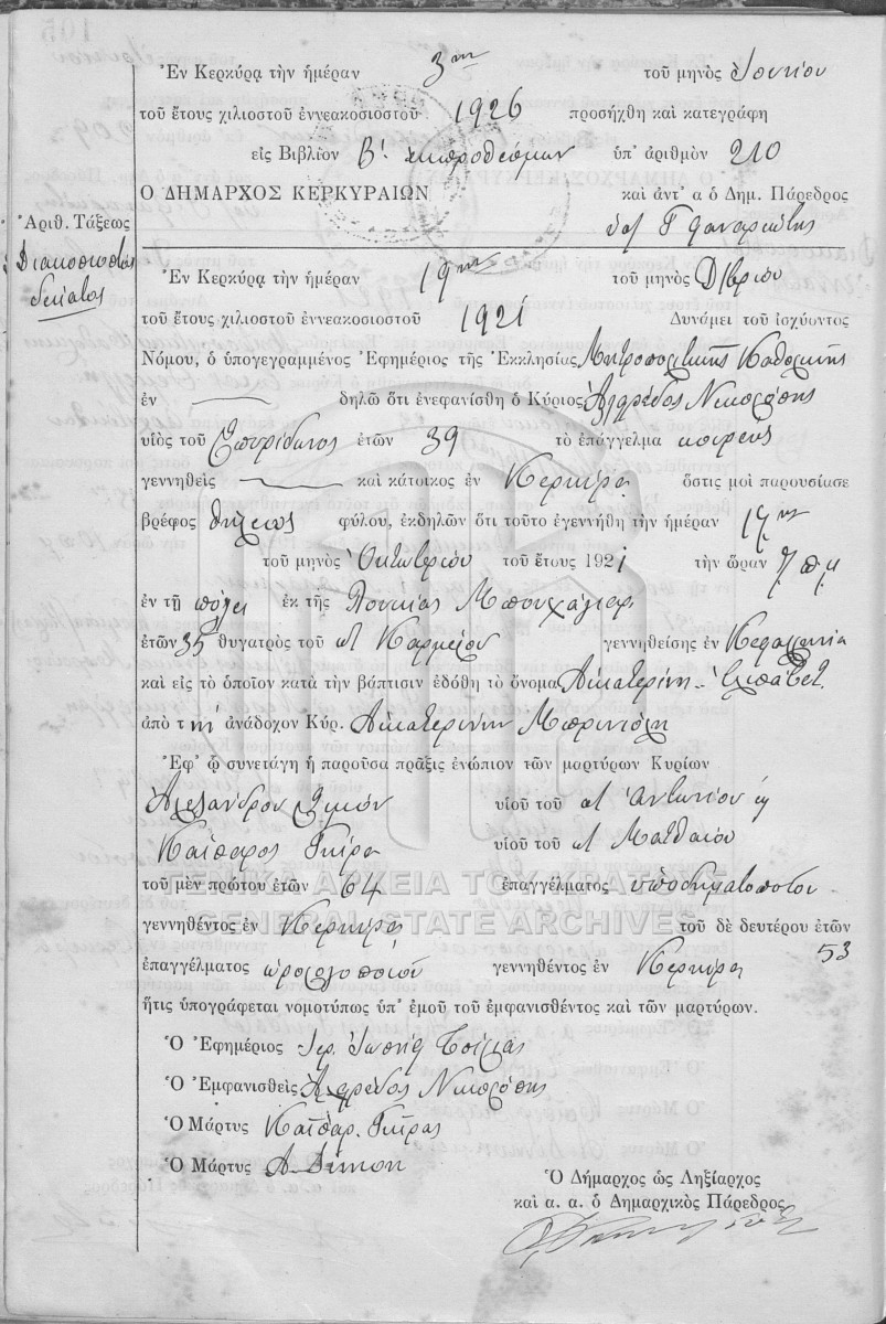 File #034 - ΛΗΞΙΑΡΧΕΙΟ ΚΕΡΚΥΡΑΣ  [1926]