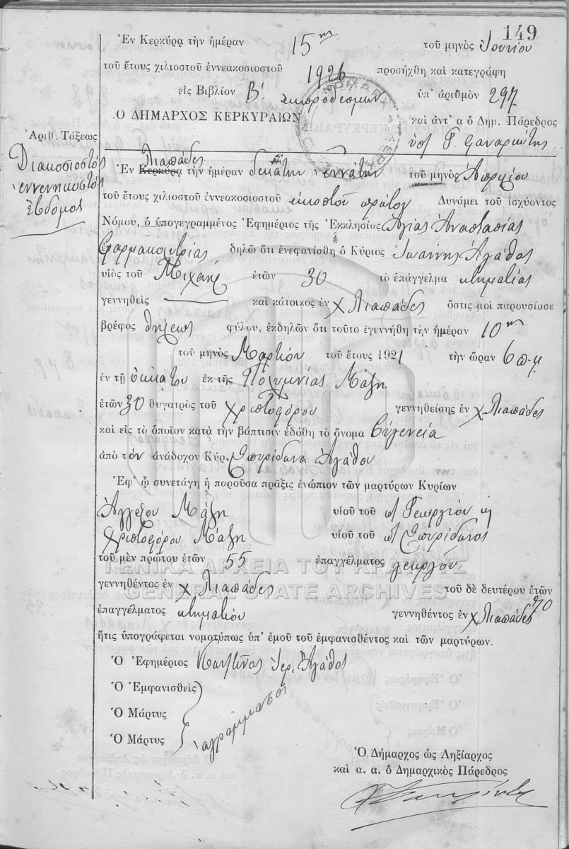 File #034 - ΛΗΞΙΑΡΧΕΙΟ ΚΕΡΚΥΡΑΣ  [1926]