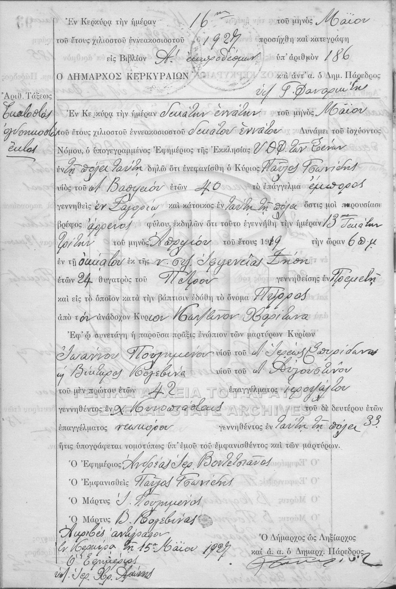 Φάκελος #036 - ΛΗΞΙΑΡΧΕΙΟ ΚΕΡΚΥΡΑΣ  [1927]