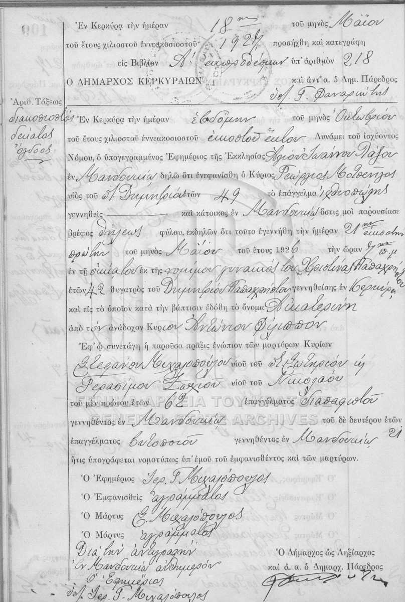 File #036 - ΛΗΞΙΑΡΧΕΙΟ ΚΕΡΚΥΡΑΣ  [1927]