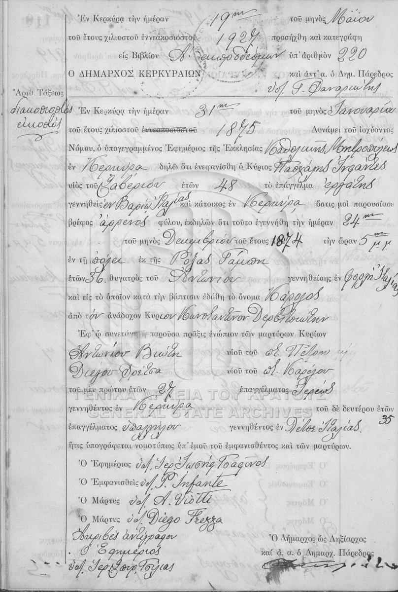ΛΗΞΙΑΡΧΕΙΟ ΚΕΡΚΥΡΑΣ - Ληξιαρχικές Πράξεις Γεννήσεων - Εκπρόθεσμα  [1841 - 1932]