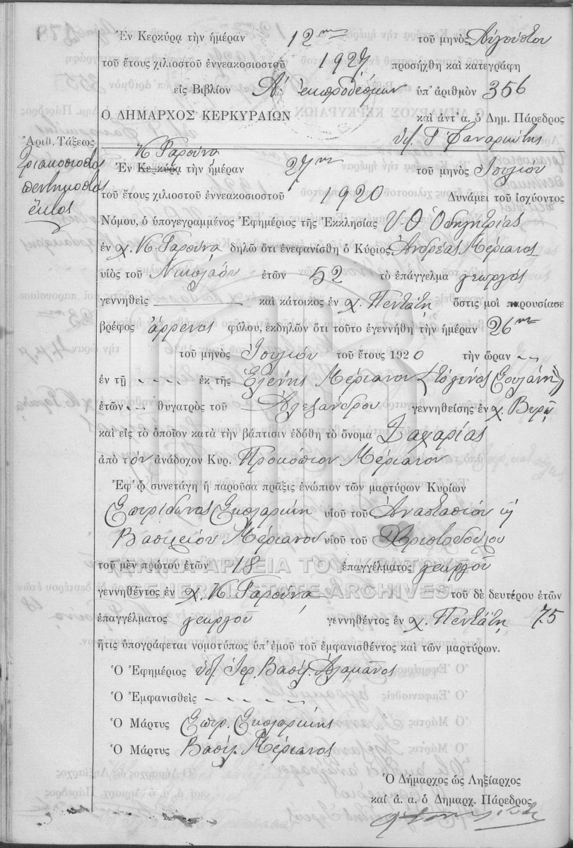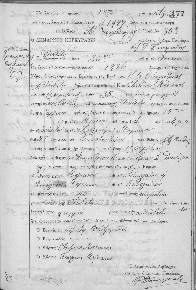 File #036 - ΛΗΞΙΑΡΧΕΙΟ ΚΕΡΚΥΡΑΣ  [1927]