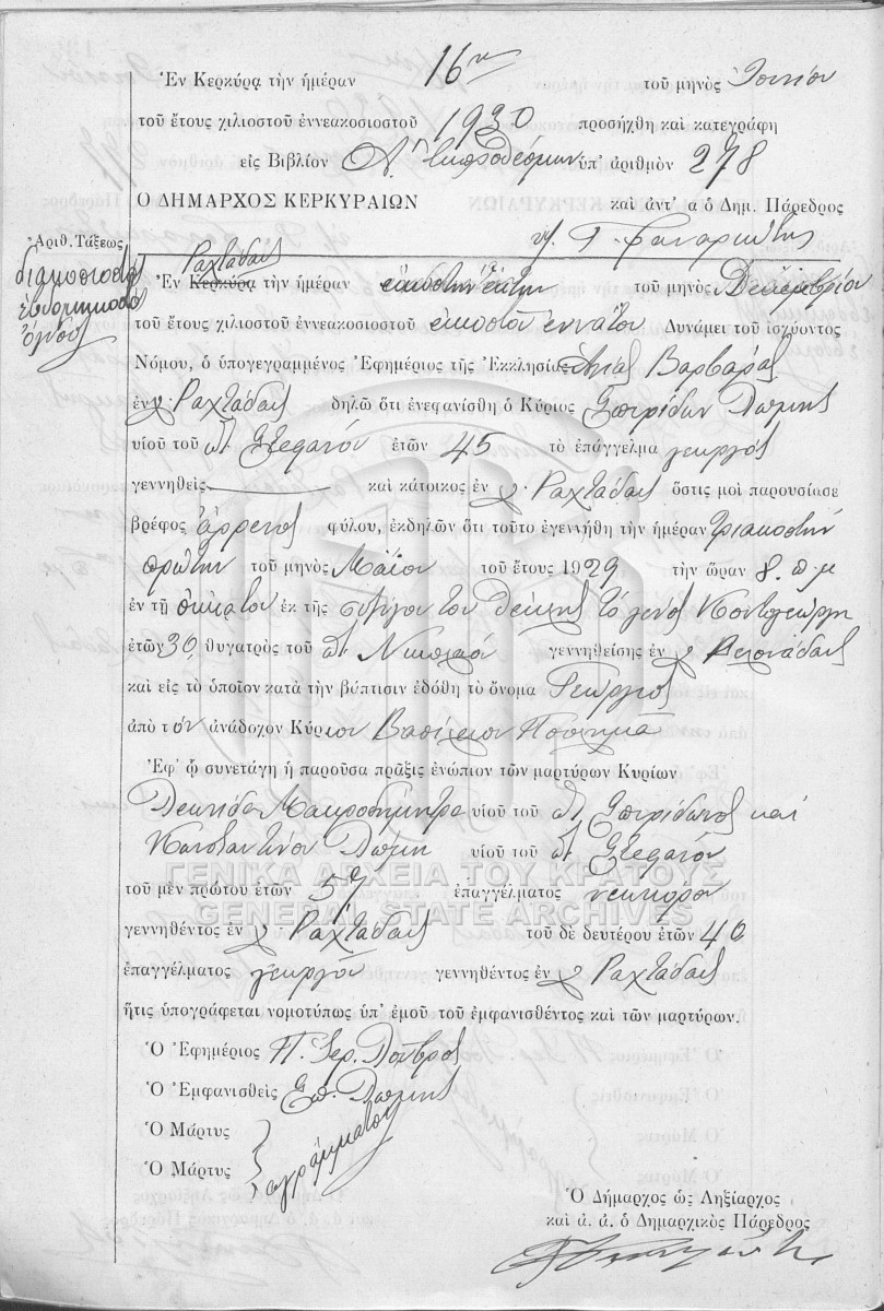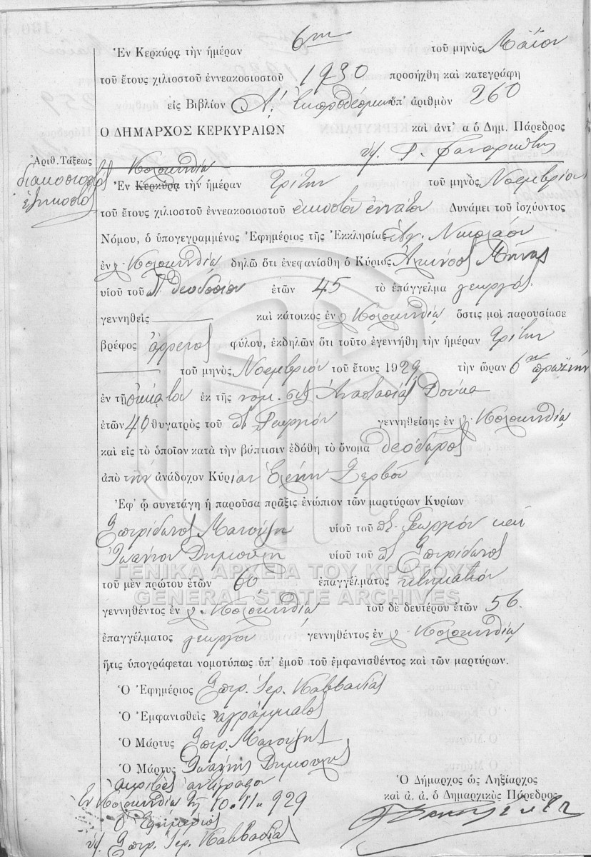 File #040 - ΛΗΞΙΑΡΧΕΙΟ ΚΕΡΚΥΡΑΣ  [1930]