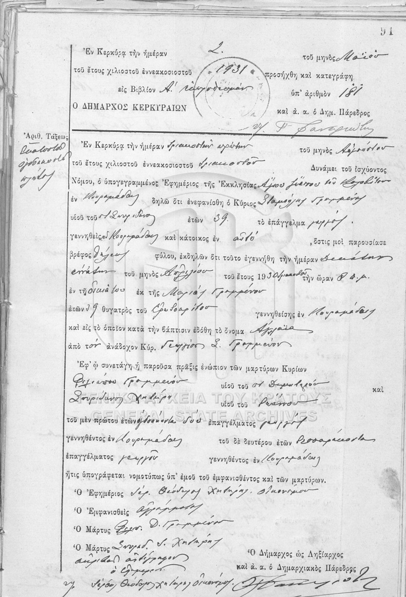 File #041 - ΛΗΞΙΑΡΧΕΙΟ ΚΕΡΚΥΡΑΣ  [1931]