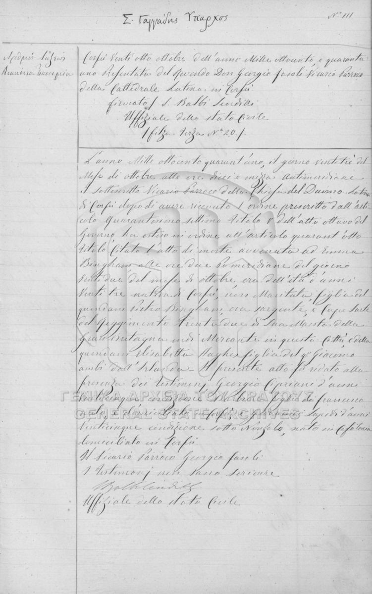 ΛΗΞΙΑΡΧΕΙΟ ΚΕΡΚΥΡΑΣ - Ληξιαρχικές Πράξεις Θανάτων  [1841 - 1932]