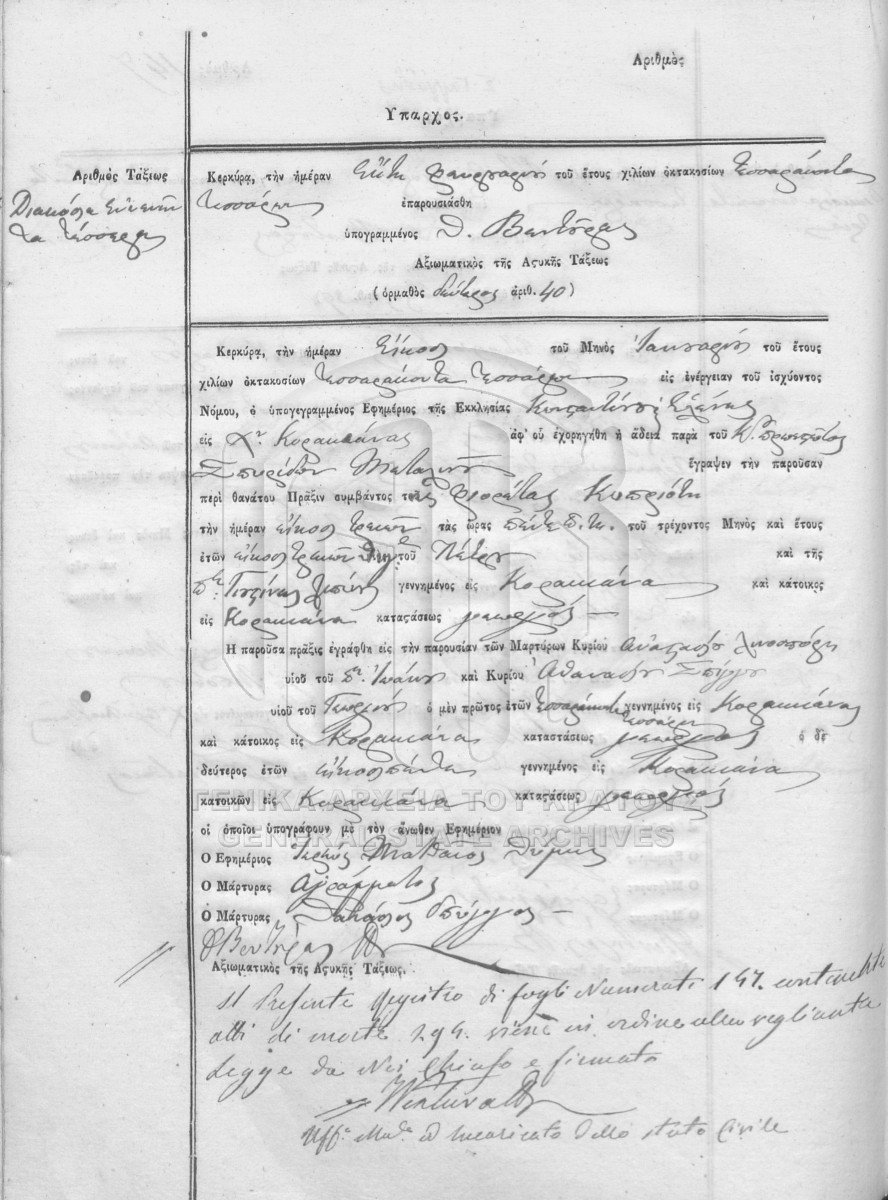 ΛΗΞΙΑΡΧΕΙΟ ΚΕΡΚΥΡΑΣ - Ληξιαρχικές Πράξεις Θανάτων  [1841 - 1932]