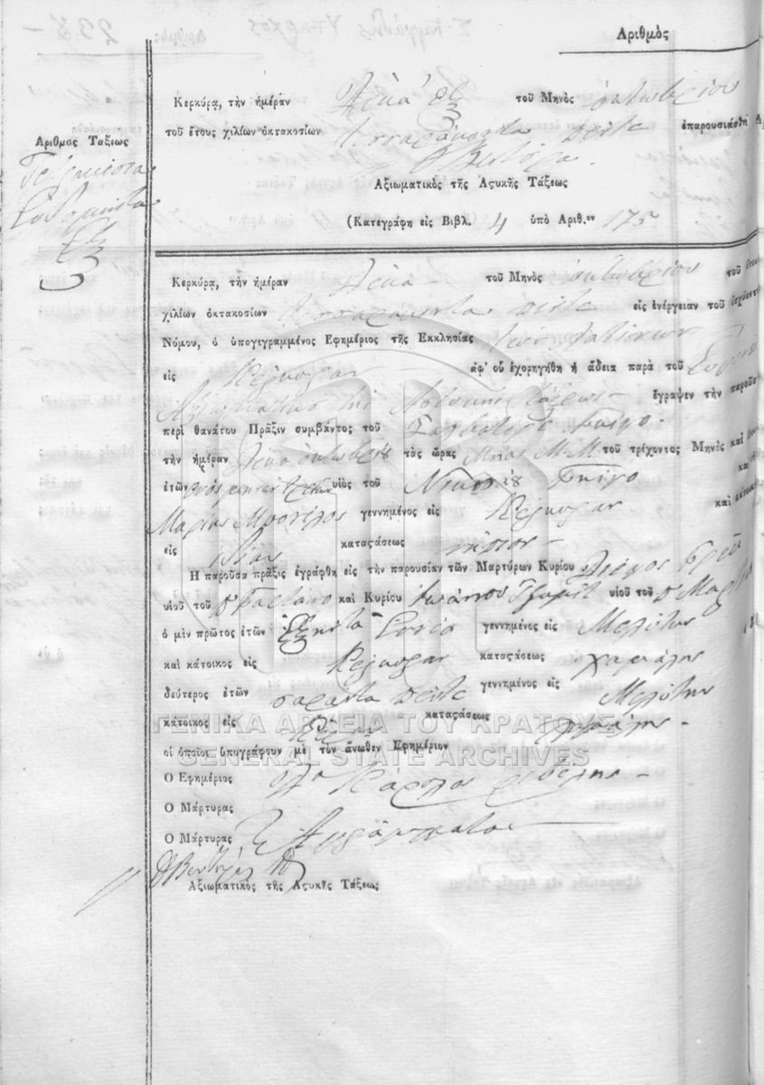 Υποφάκελος #002 - ΛΗΞΙΑΡΧΕΙΟ ΚΕΡΚΥΡΑΣ  [1845]