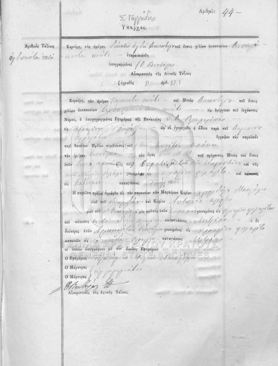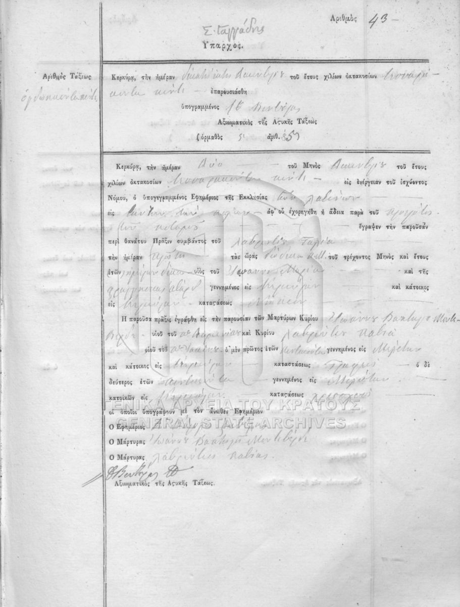 [Αρχείο] GRGSA-KER_REGD00 ΛΗΞΙΑΡΧΕΙΟ ΚΕΡΚΥΡΑΣ - Ληξιαρχικές Πράξεις Θανάτων [1841 - 1932] Περιεχόμενα: Αριθμός πράξεων 1 - 600. Βιβλίο 1. Αριθμός πράξεων 1 - 565. |