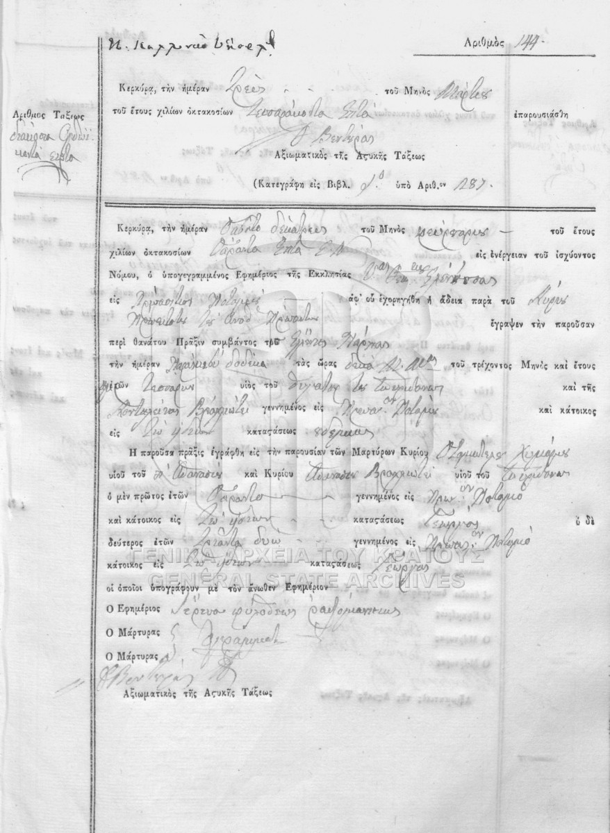 File #1847 - ΛΗΞΙΑΡΧΕΙΟ ΚΕΡΚΥΡΑΣ  [1847]
