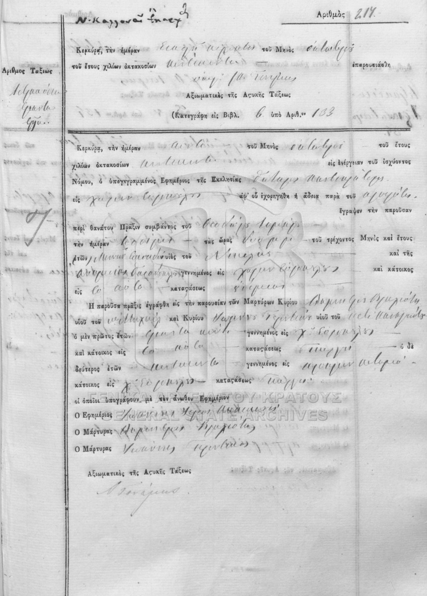 ΛΗΞΙΑΡΧΕΙΟ ΚΕΡΚΥΡΑΣ - Ληξιαρχικές Πράξεις Θανάτων  [1841 - 1932]