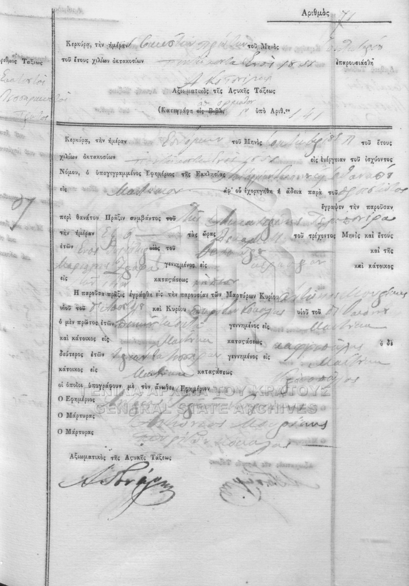 ΛΗΞΙΑΡΧΕΙΟ ΚΕΡΚΥΡΑΣ - Ληξιαρχικές Πράξεις Θανάτων  [1841 - 1932]