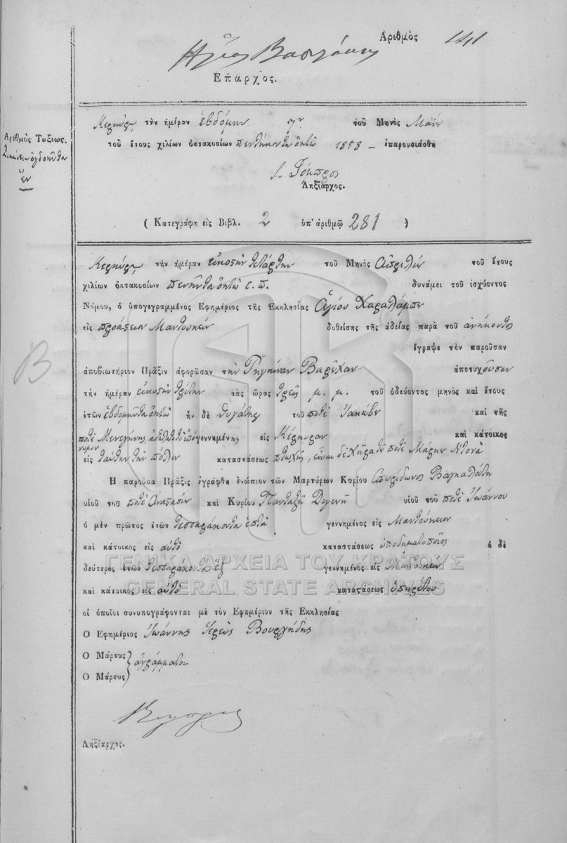 Βιβλίο όγδοο, αριθμός πράξεων 1 - 294.