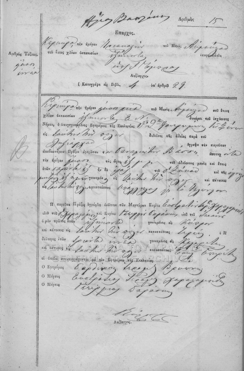 Περιεχόμενα: Βιβλίο 1. Αριθμός πράξεων 1 - 290. Βιβλίο 2. Αριθμός πράξεων 1 - 294. Βιβλίο 3. Αριθμός πράξεων 1 - 298. Βιβλίο τέταρτο,...