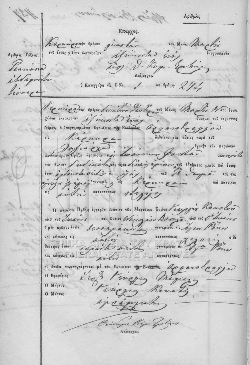 Υποφάκελος #001 - ΛΗΞΙΑΡΧΕΙΟ ΚΕΡΚΥΡΑΣ  [1861]