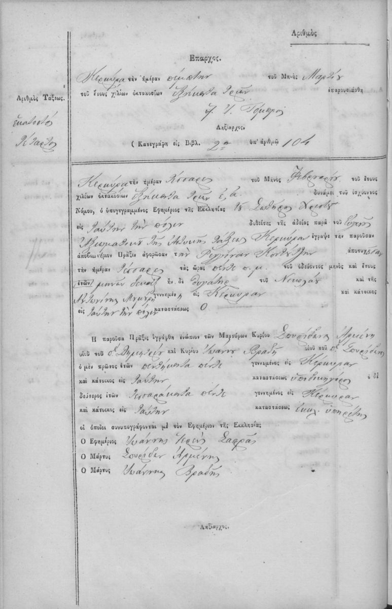 Contents: Αριθμός πράξεων 1 - 600. Βιβλίο 1. Αριθμός πράξεων 1 - 565.
