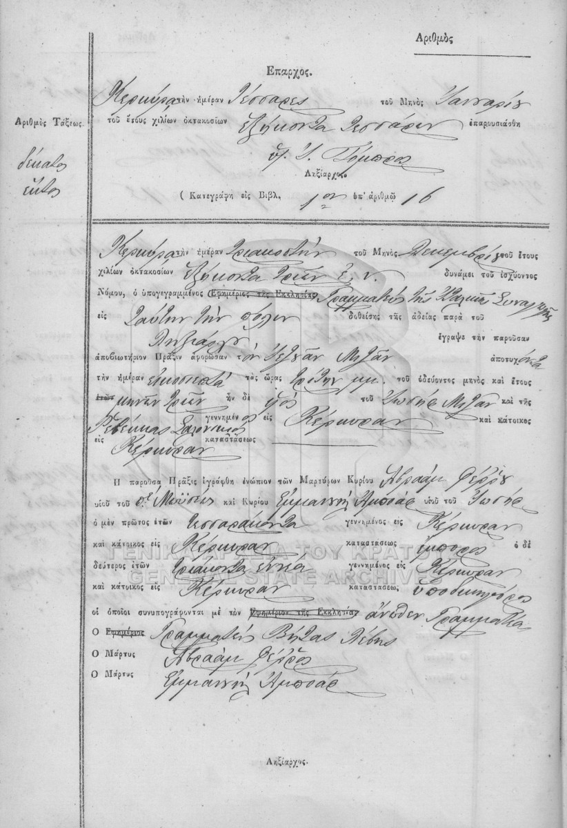 [Sous-fichier] GRGSA-KER_REGD00.00.F001864.SF0001 Sous-fichier #001 - ΛΗΞΙΑΡΧΕΙΟ ΚΕΡΚΥΡΑΣ [1864] Βιβλίο πρώτο, αριθμός πράξεων 1 - 288. |