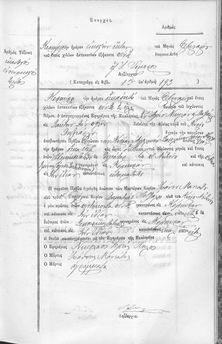 Υποφάκελος #001 - ΛΗΞΙΑΡΧΕΙΟ ΚΕΡΚΥΡΑΣ  [1865]
