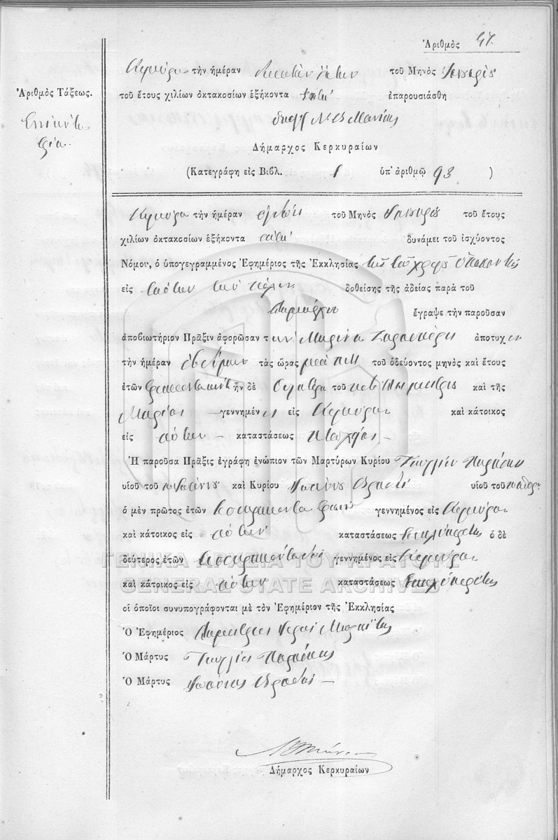 Υποφάκελος #001 - ΛΗΞΙΑΡΧΕΙΟ ΚΕΡΚΥΡΑΣ  [1867]