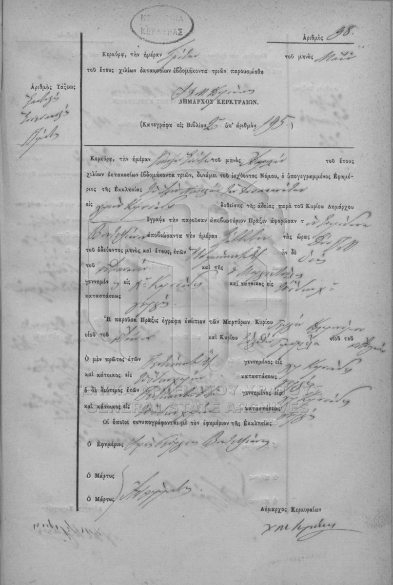 Φάκελος #1873 - ΛΗΞΙΑΡΧΕΙΟ ΚΕΡΚΥΡΑΣ  [1873]