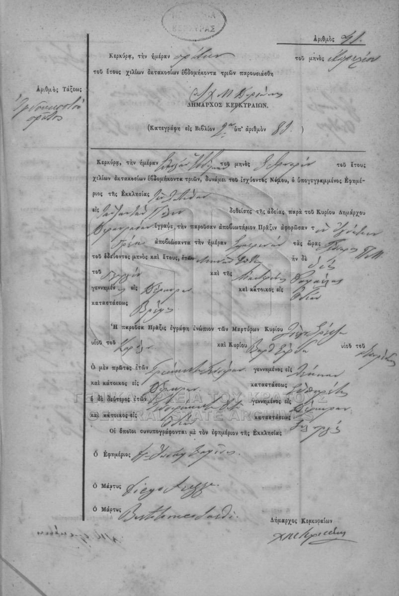 Φάκελος #1873 - ΛΗΞΙΑΡΧΕΙΟ ΚΕΡΚΥΡΑΣ  [1873]