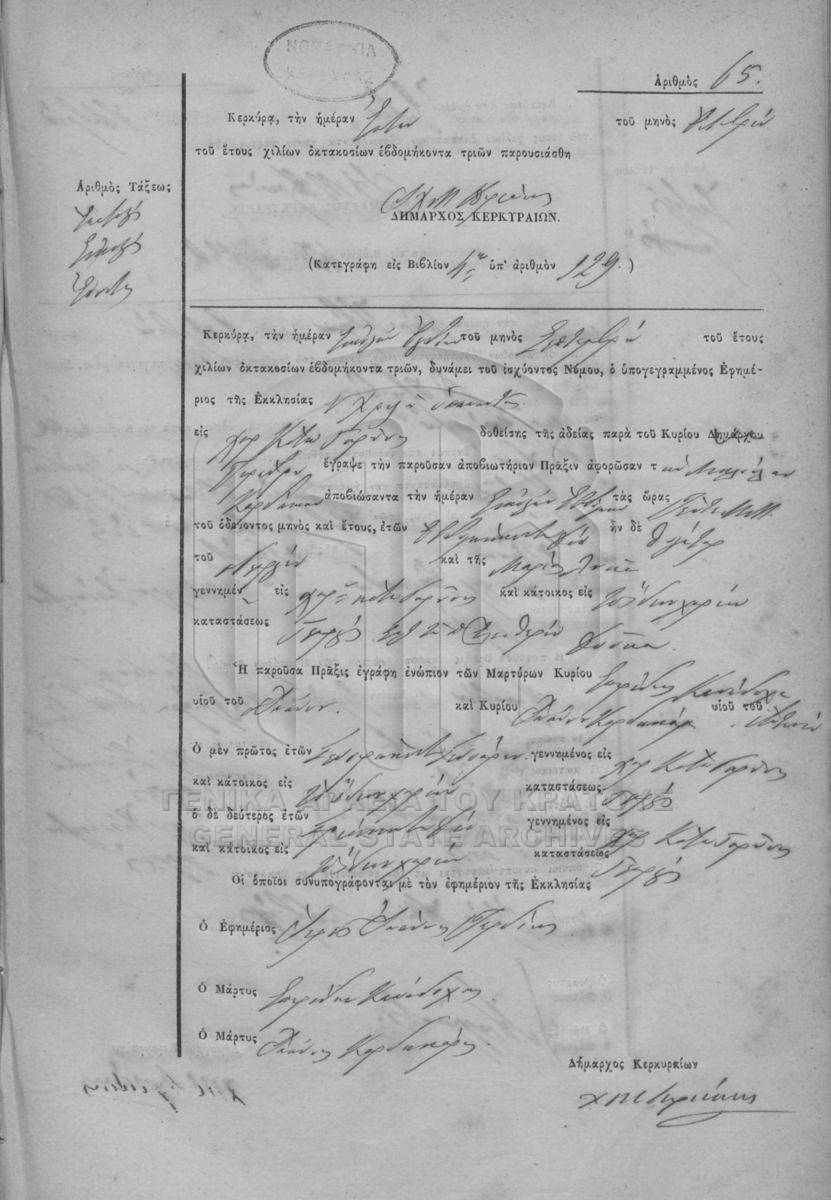 [Αρχείο] GRGSA-KER_REGD00 ΛΗΞΙΑΡΧΕΙΟ ΚΕΡΚΥΡΑΣ - Ληξιαρχικές Πράξεις Θανάτων [1841 - 1932] Περιεχόμενα: Αριθμός πράξεων 1 - 600. Βιβλίο 1. Αριθμός πράξεων 1 - 565. |