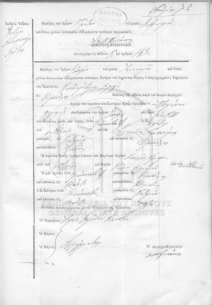 Φάκελος #1874 - ΛΗΞΙΑΡΧΕΙΟ ΚΕΡΚΥΡΑΣ  [1874]
