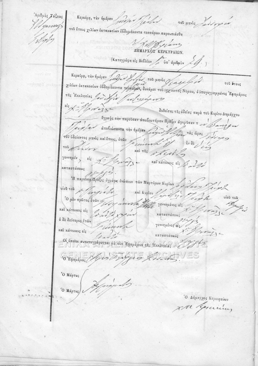 Φάκελος #1874 - ΛΗΞΙΑΡΧΕΙΟ ΚΕΡΚΥΡΑΣ  [1874]