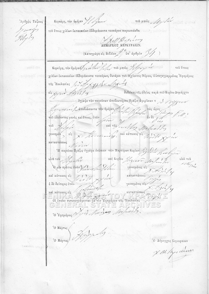 File #1874 - ΛΗΞΙΑΡΧΕΙΟ ΚΕΡΚΥΡΑΣ  [1874]