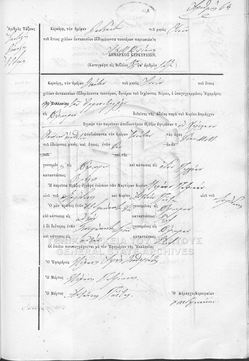 File #1874 - ΛΗΞΙΑΡΧΕΙΟ ΚΕΡΚΥΡΑΣ  [1874]