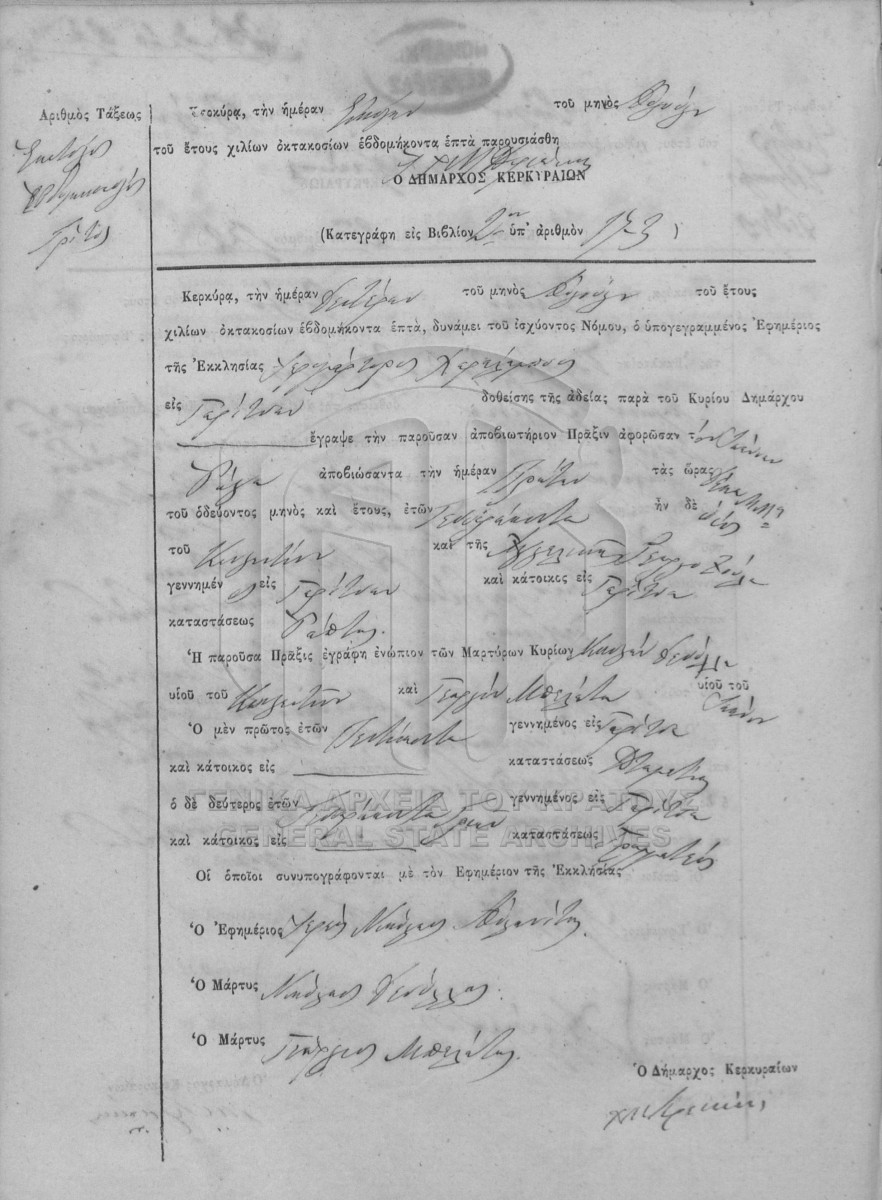 Φάκελος #1877 - ΛΗΞΙΑΡΧΕΙΟ ΚΕΡΚΥΡΑΣ  [1877]