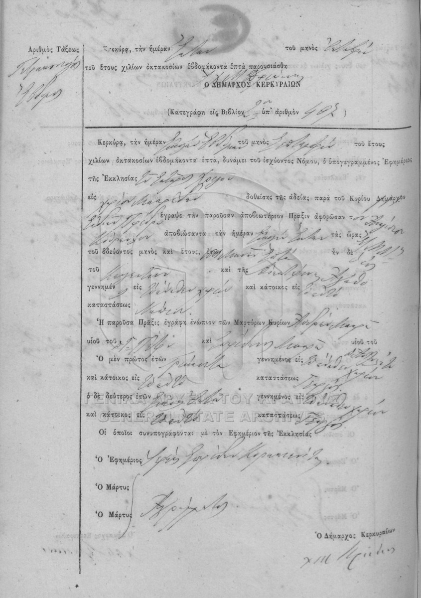 |  | [Αρχείο] GRGSA-KER_REGD00 ΛΗΞΙΑΡΧΕΙΟ ΚΕΡΚΥΡΑΣ - Ληξιαρχικές Πράξεις Θανάτων [1841 - 1932] Περιεχόμενα: Αριθμός πράξεων 1 - 600. Βιβλίο 1. Αριθμός πράξεων 1 - 565. |