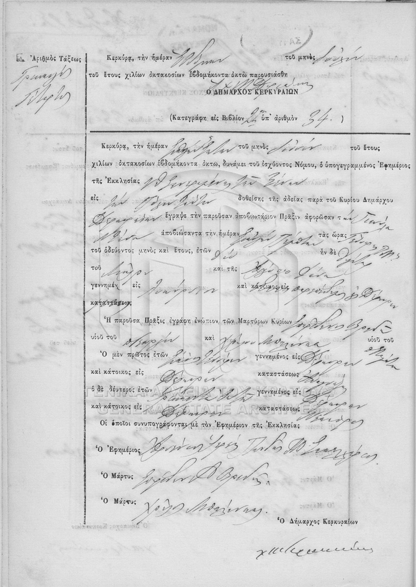 Φάκελος #1878 - ΛΗΞΙΑΡΧΕΙΟ ΚΕΡΚΥΡΑΣ  [1878]