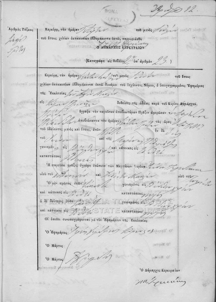 Υποφάκελος #002 - ΛΗΞΙΑΡΧΕΙΟ ΚΕΡΚΥΡΑΣ  [1878]