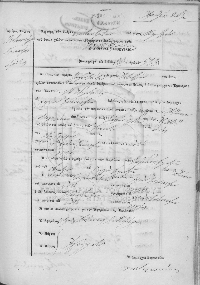 Φάκελος #1878 - ΛΗΞΙΑΡΧΕΙΟ ΚΕΡΚΥΡΑΣ  [1878]