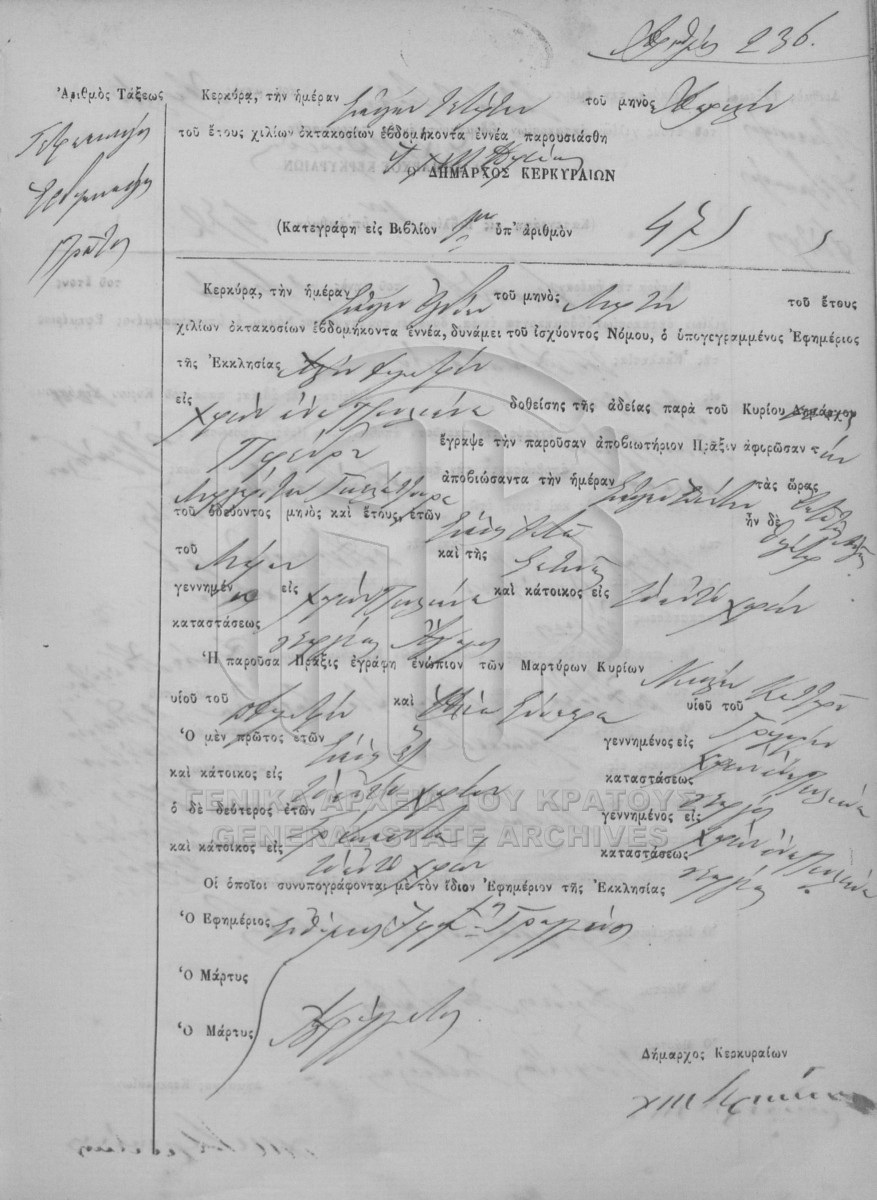 Υποφάκελος #001 - ΛΗΞΙΑΡΧΕΙΟ ΚΕΡΚΥΡΑΣ  [1879]