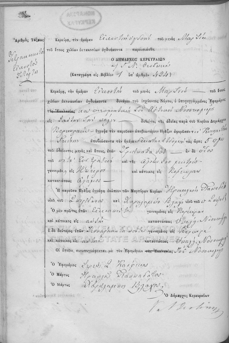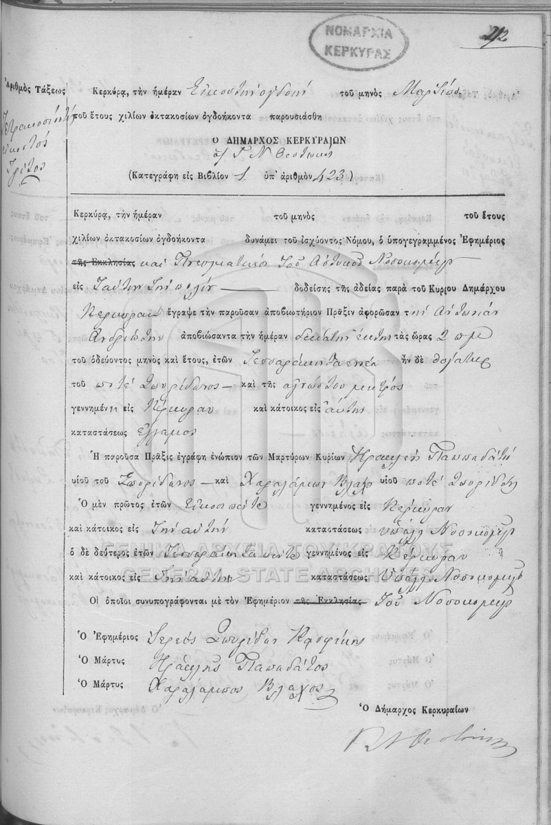 Υποφάκελος #001 - ΛΗΞΙΑΡΧΕΙΟ ΚΕΡΚΥΡΑΣ  [1880]
