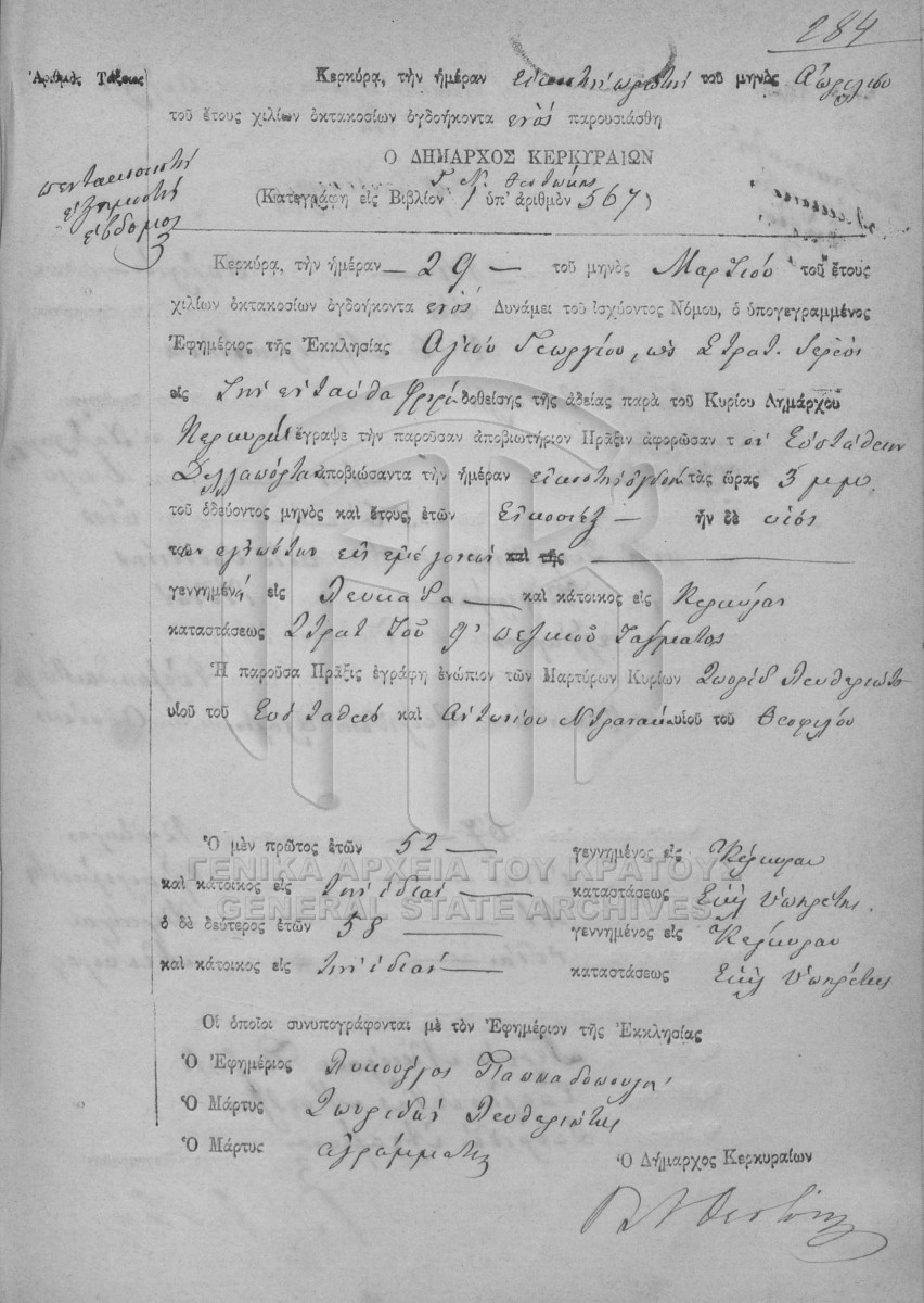 ΛΗΞΙΑΡΧΕΙΟ ΚΕΡΚΥΡΑΣ - Ληξιαρχικές Πράξεις Θανάτων  [1841 - 1932]