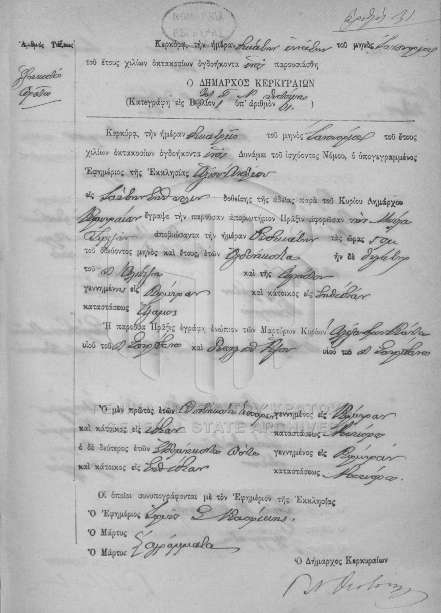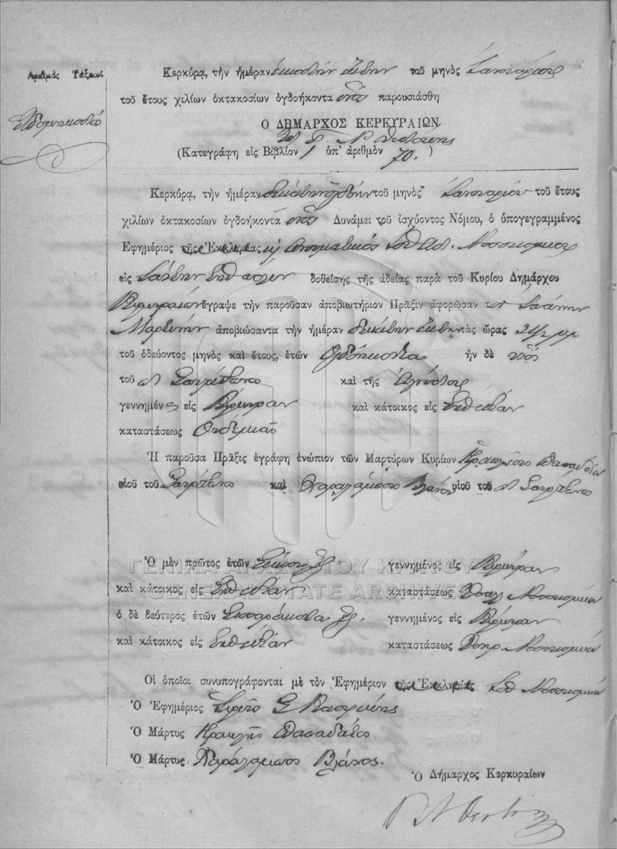 Υποφάκελος #001 - ΛΗΞΙΑΡΧΕΙΟ ΚΕΡΚΥΡΑΣ  [1881]