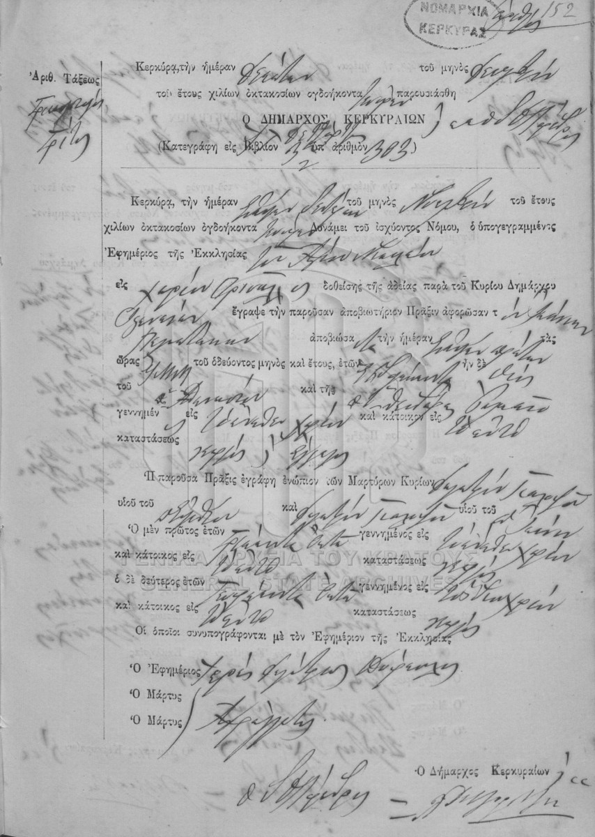 Υποφάκελος #003 - ΛΗΞΙΑΡΧΕΙΟ ΚΕΡΚΥΡΑΣ  [1884]