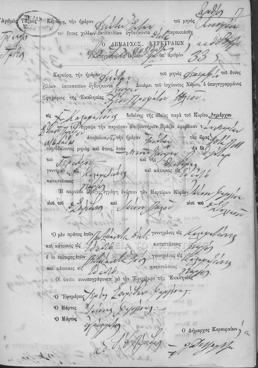 File #1885 - ΛΗΞΙΑΡΧΕΙΟ ΚΕΡΚΥΡΑΣ  [1885]