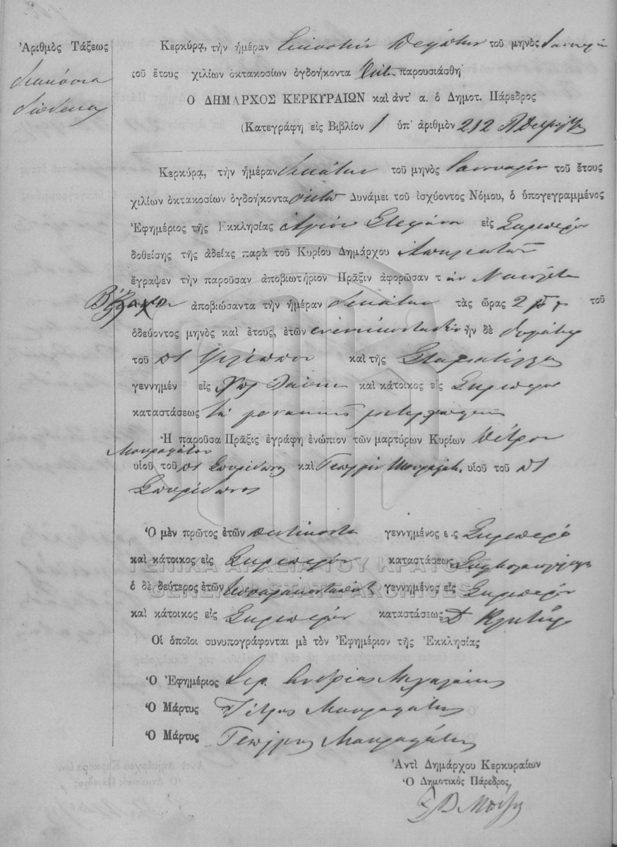 ΛΗΞΙΑΡΧΕΙΟ ΚΕΡΚΥΡΑΣ - Ληξιαρχικές Πράξεις Θανάτων  [1841 - 1932]