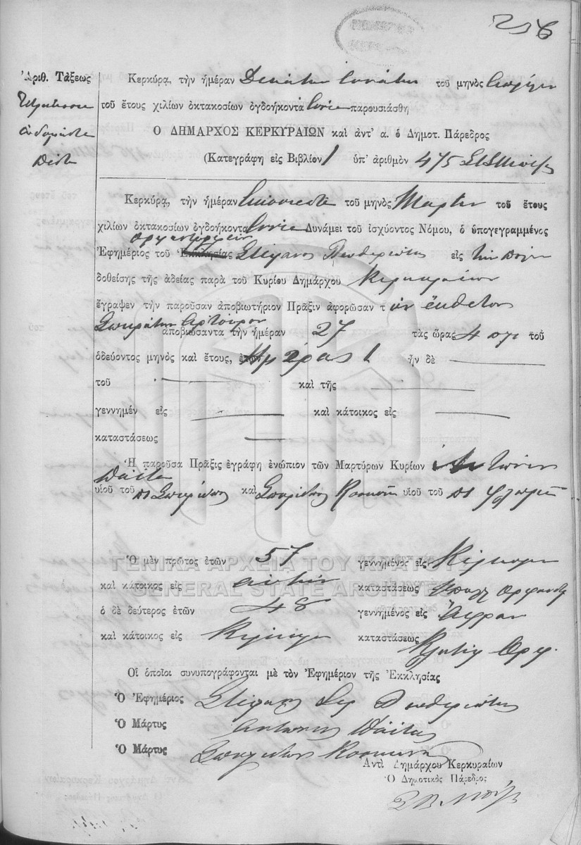 Υποφάκελος #001 - ΛΗΞΙΑΡΧΕΙΟ ΚΕΡΚΥΡΑΣ  [1889]