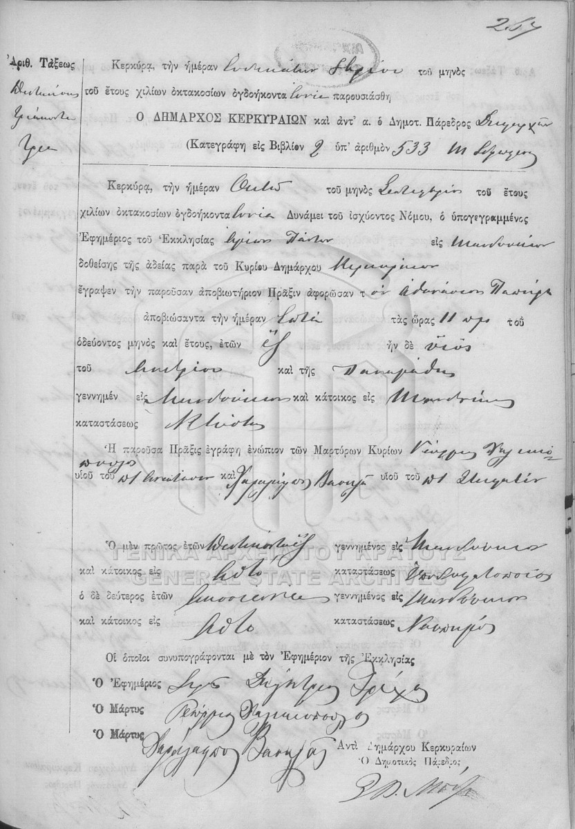 Υποφάκελος #002 - ΛΗΞΙΑΡΧΕΙΟ ΚΕΡΚΥΡΑΣ  [1889]