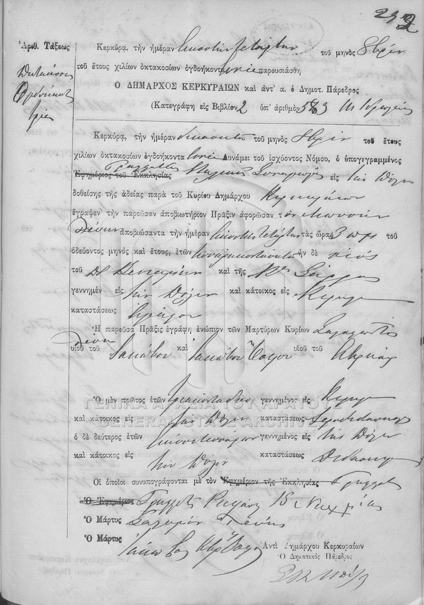 Sous-fichier #002 - ΛΗΞΙΑΡΧΕΙΟ ΚΕΡΚΥΡΑΣ  [1889]