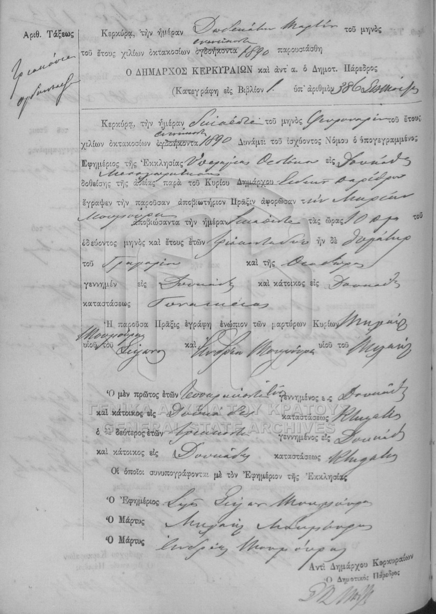 Φάκελος #1890 - ΛΗΞΙΑΡΧΕΙΟ ΚΕΡΚΥΡΑΣ  [1890]