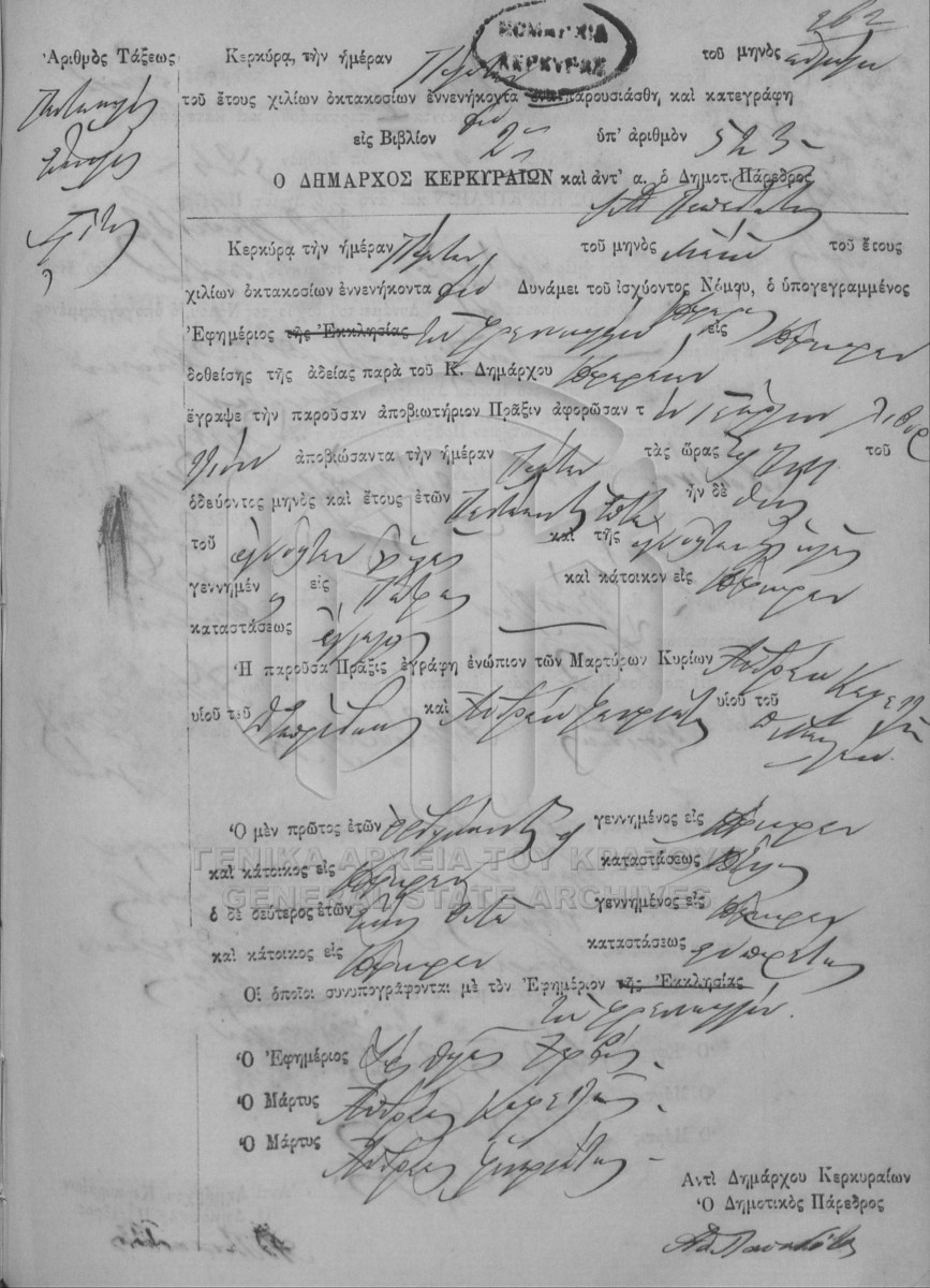 Υποφάκελος #002 - ΛΗΞΙΑΡΧΕΙΟ ΚΕΡΚΥΡΑΣ  [1892]
