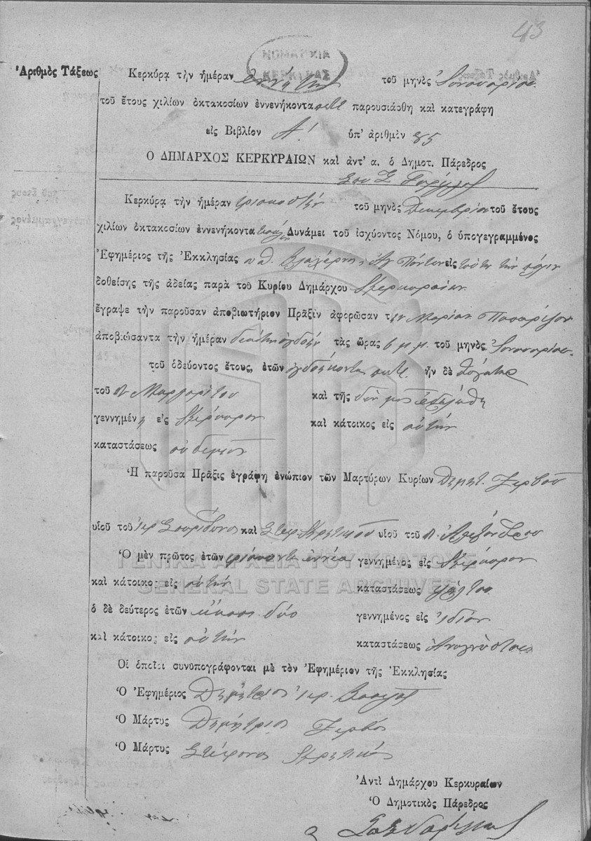 Υποφάκελος #001 - ΛΗΞΙΑΡΧΕΙΟ ΚΕΡΚΥΡΑΣ  [1895]