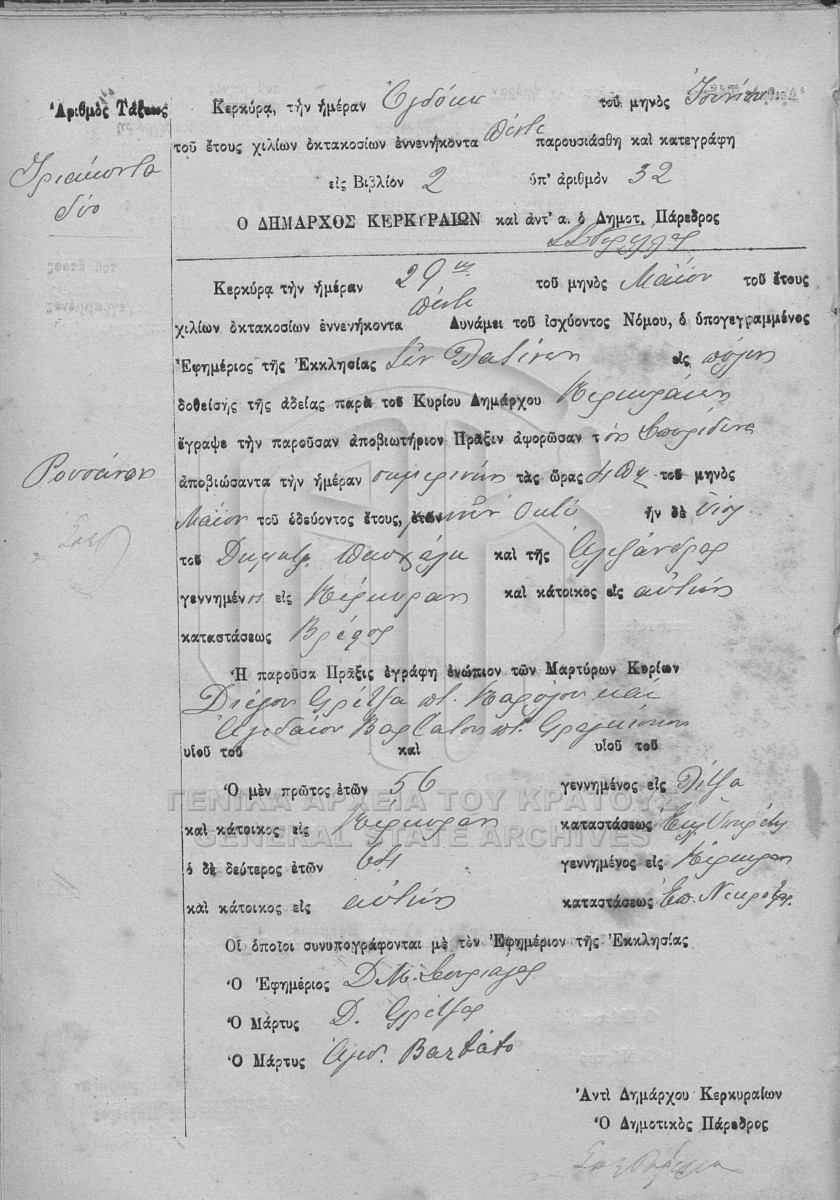 Υποφάκελος #002 - ΛΗΞΙΑΡΧΕΙΟ ΚΕΡΚΥΡΑΣ  [1895]